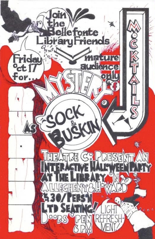 | Join Bellefonte Library Friends (BLF) for Murder and Mocktails at the Centre County Library on Friday, October 17th at 6 PM! BLF is excited to partner with Sock & Buskin Theater Co. for a thrilling evening of mystery and fun at the Centre County Library. Get ready to enjoy an interactive murder mystery while sipping on delicious mocktails. This in-person event is perfect for mystery enthusiasts and cocktail lovers alike. While there, we hope that you get a chance to get to know the Bellefonte Library Friends and what they do for the community! Mocktails and Appetizers are provided. The interactive murder mystery takes place at a Halloween Party. Feel free to dress in costume. Doors open at 6pm for Mocktails and Apps. Performance begins at 6:30 PM and ends approximately 2 hours later. $33.85/person, limited tickets available on Eventbrite.